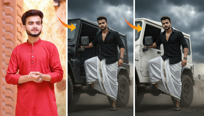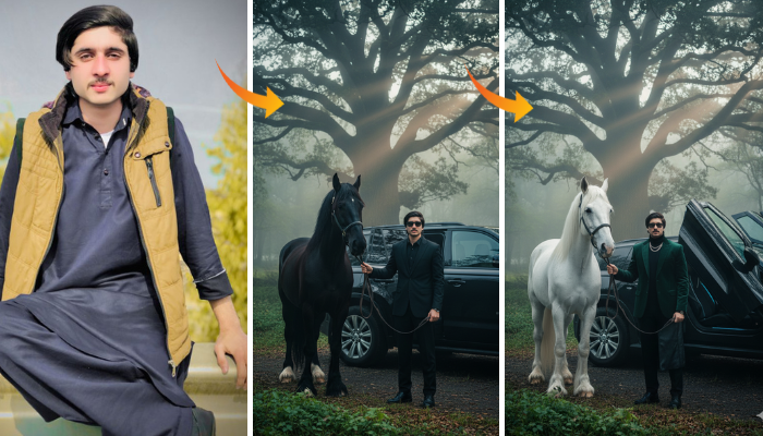 1. Scene Overview This concept transforms your photo into a dark, cinematic outdoor environment filled with mystery and tension. The