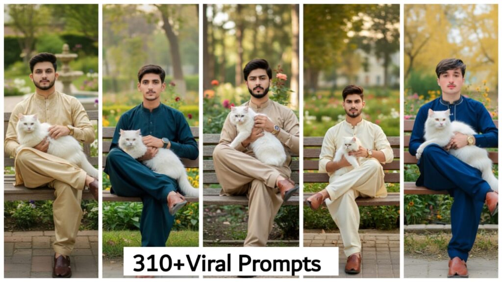 1. Overall Setting The scene captures a peaceful and elegant atmosphere in a beautifully maintained garden. Soft sunlight filters through