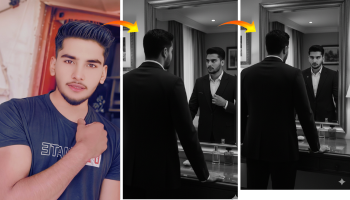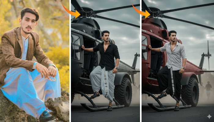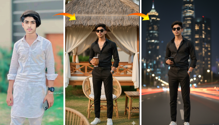 The concept presents a 4K ultra-realistic DSLR-style photograph featuring a stylish young man posed confidently in a luxury outdoor resort.