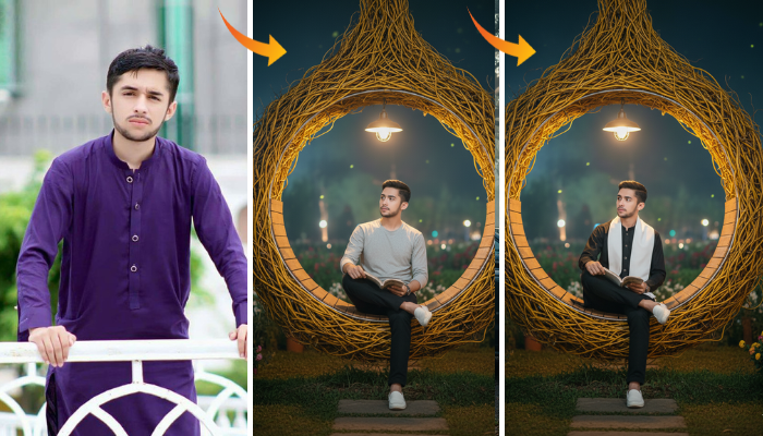 Adegan ini menampilkan suasana malam yang hangat dan artistik di sebuah taman outdoor yang penuh pencahayaan lembut. Seluruh komposisi memiliki […]